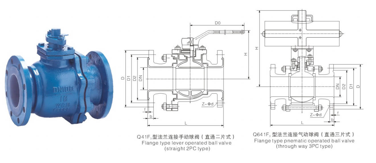 The ball valve is of Q41F46 type and can be classified into two-piece (split) and three-piece structures. It features low flow resistance, quick opening and closing, and a simple structure, along with the following advantages: