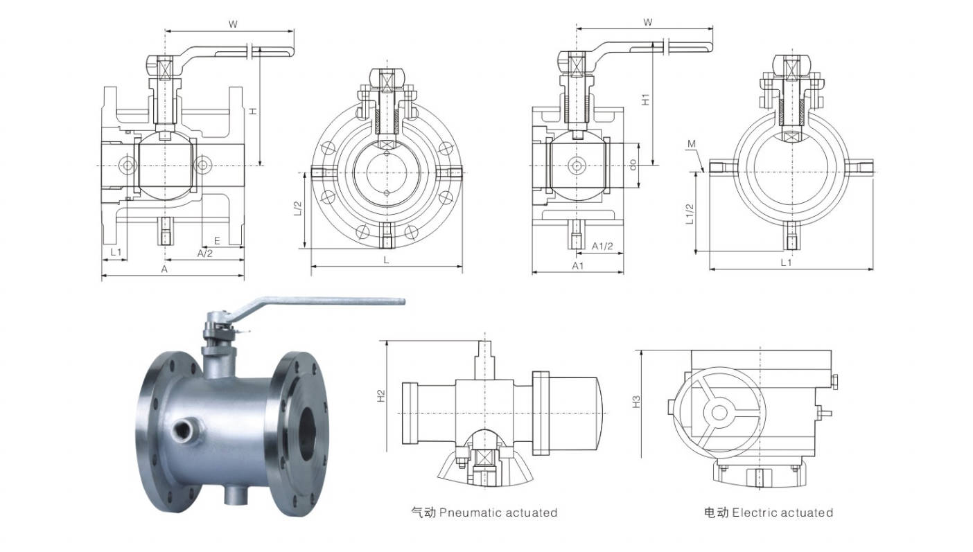 | DN | NPS | A | A1 | do | H | H1 | H2 | H3 | W | M | L | L1 | E | Flange Size | Weight (kg) |