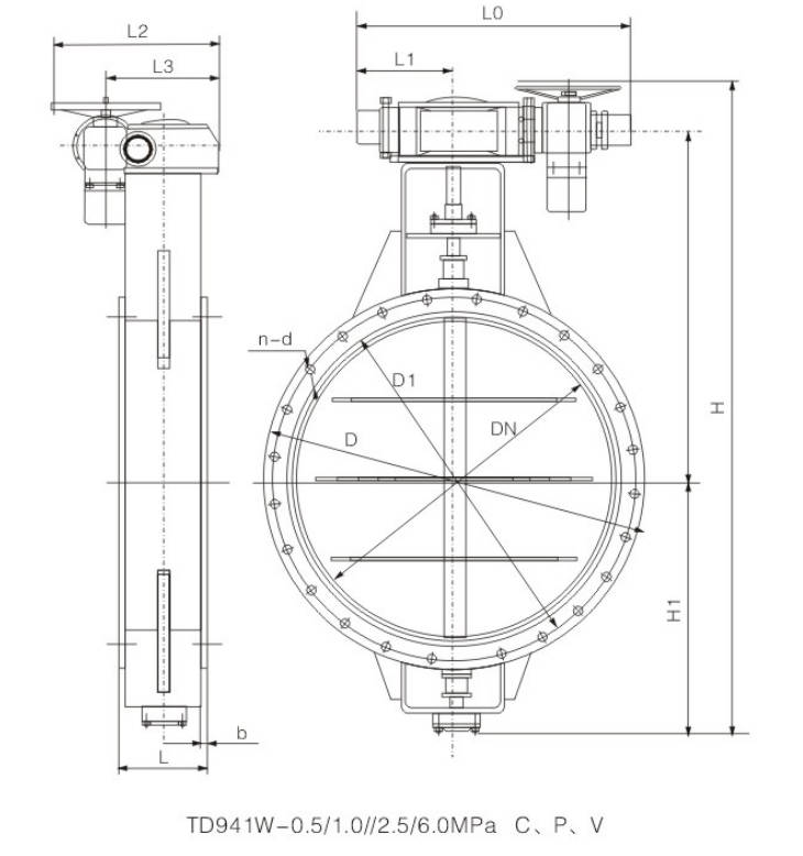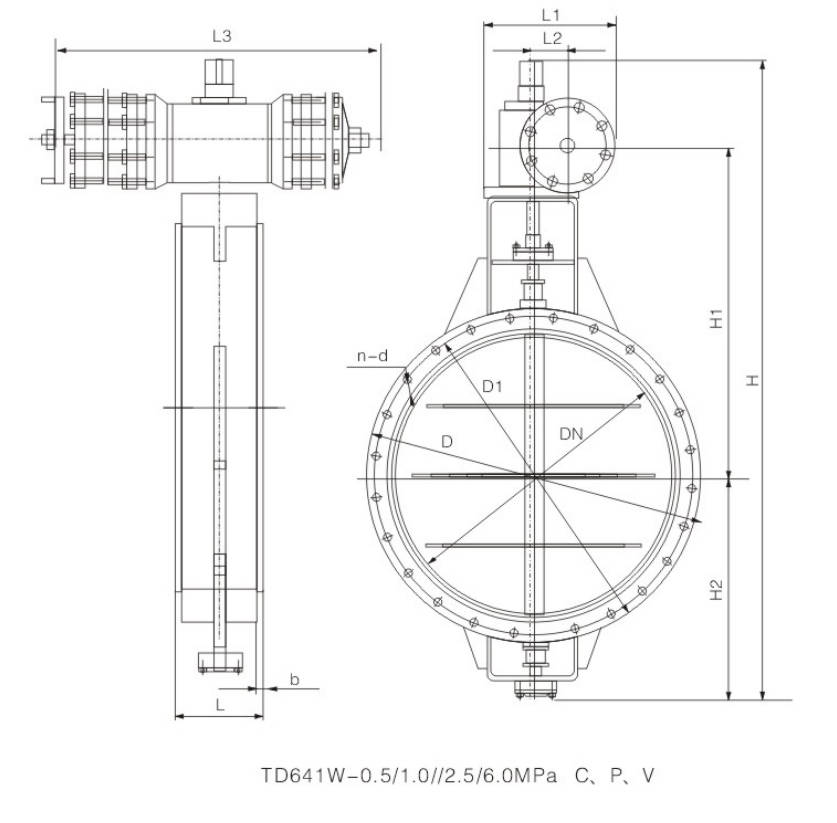 | DN | L | D | D1 | b | n-d | H | H1 | H2 | L1 | L2 | L3 | Weight (kg) |