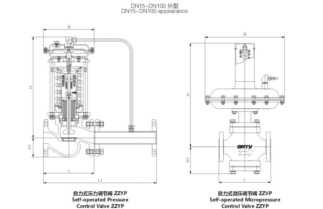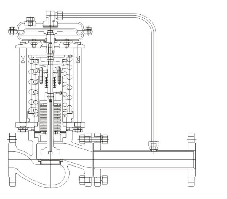 Self-operated Pressure Control Valve adopts external pressure structure, which can automatically adjust and stabilize the pressure depending on the pressure change of the medium itself. It is suitable for liquid, steam, non–corrosive gas and low–viscosity liquid with nominal diameter DN100, P1=1.0MPa, P2=15KPa, pressure reduction ratio is =10, =1.25.