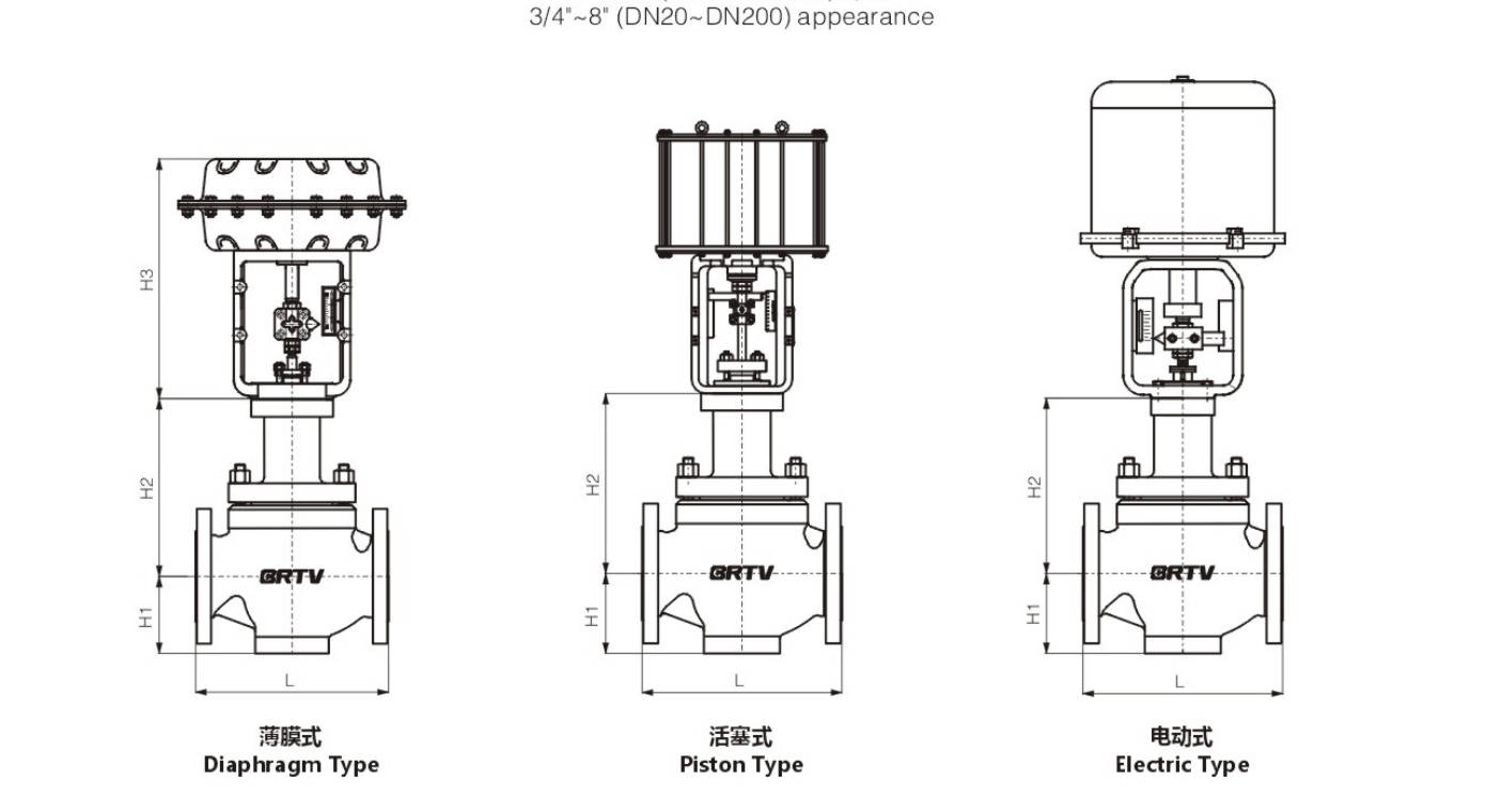 It is equipped with multi–spring pneumatic diaphragm actuator or electric actuator. It has characteristics of small size, light weight, large output force, easy installation, which can be used to control a variety of different pressure and temperature of the fluid.