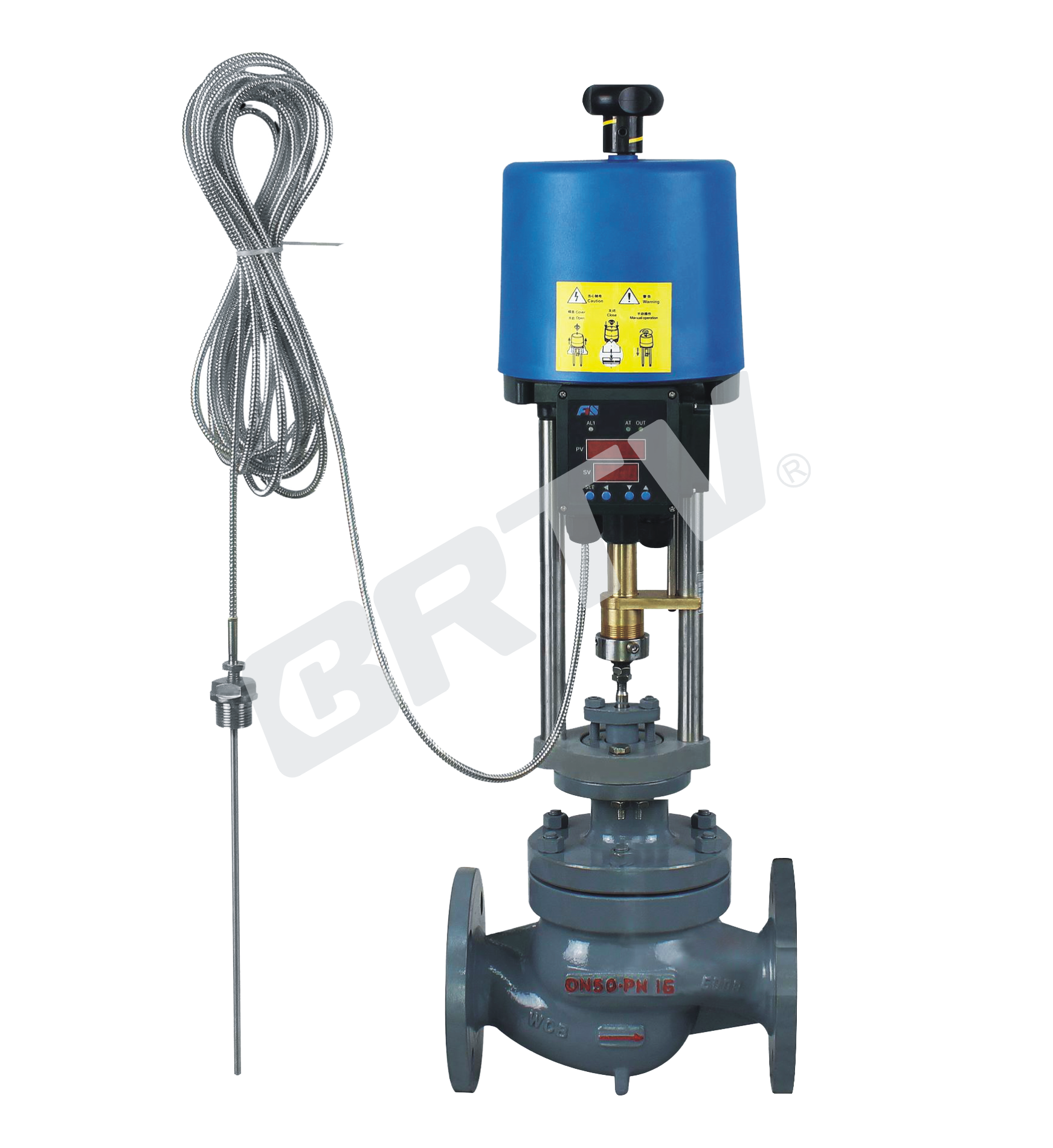 Temperature Control Valve is one of the self–operated temperature controlled control valve series of the executive unit products. The actuator and the control valve constitute the electric control valve, which is one kind of actuator to measure in the industrial process and control temperature in the control mechanism. It has built–in servo amplifier, and standard PT100 thermal resistance, which adopts single phase 220VAC power supply as the power, and magneto motor as the driving motor. It is an intelligent instrument of scientific and technological innovation, which is composed by micro–processing digital control circuit and mechanical transmission.