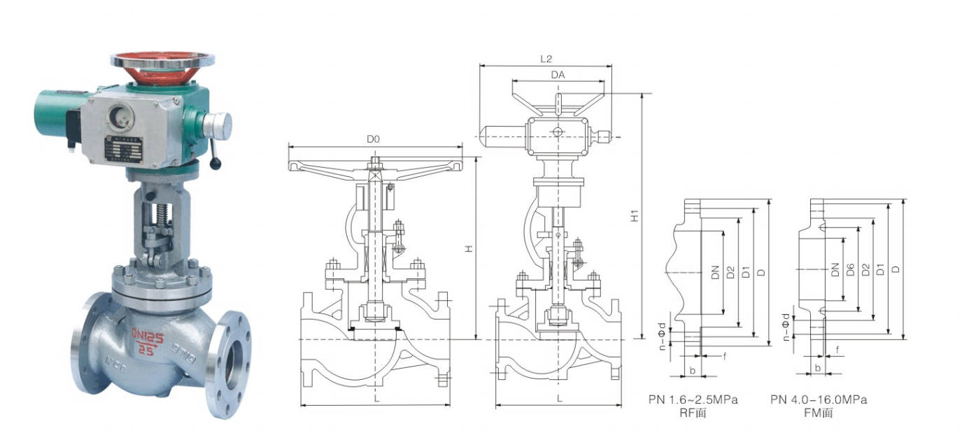 | Type | DN | L | D | D1 | D2 | D6 | b | n-Φd | H | D0 | L2 | H1 | DA | Electric Actuator Code |
